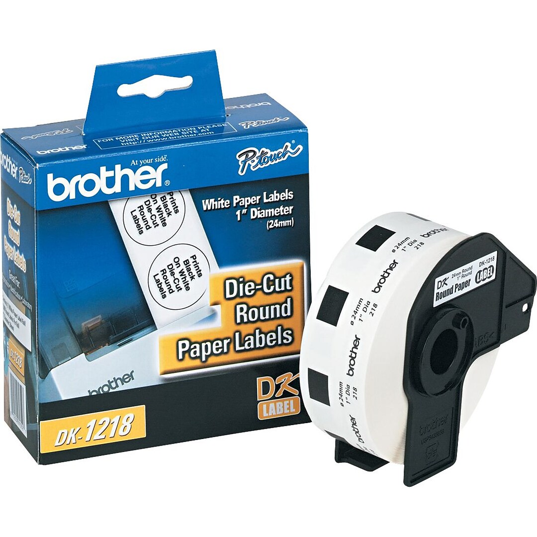 Brother P-Touch® Label Printer Round Die-Cut Paper Labels, DK1218 ... Brother P-Touch® Label Printer Round Die-Cut Paper Labels, DK1218, White, 1" x 1", 1,000/Roll Item #: 614245 | Model #: DK-1218 | Write a review | | Free Returns Highlights 1,000 labels 1" round paper labels For use with Brother QL500, 550, 570, 580N, 650TD, 800, 1050, 1060N $28.49 roll Delivered by Fri, Oct 07 Ship to store Add to cart Details