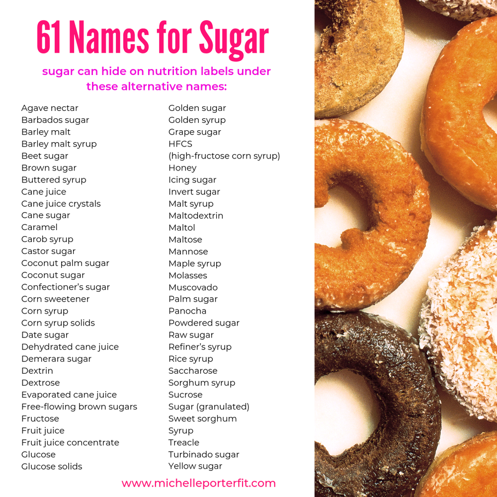 Sugar Synonyms: 56 Different Names for Sugar - Virta Health Sep 23, 2022 · If you have a lower tolerance to carbohydrates, it’s important to be aware of all of the different names or “synonyms” for sugar, so you can check labels and identify products where sugar might be hiding out, even when at first glance, the nutrition facts appear to show it’s low in carbs and added sugar. What to look out for