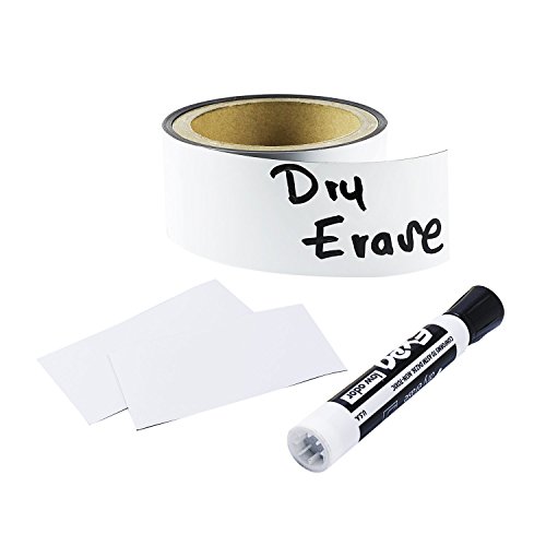 Houseables Magnetic Dry Erase Labels, Write On Magnets for Classroom, Glossy White, 1 Inch Wide x 25' Long, Roll, Writable Strips, Wipe Off Label, ...